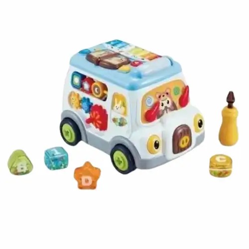 - Fonctionnalités Musicales et Lumineuses : Le bus émet des mélodies entraînantes et s’illumine pour un spectacle captivant qui stimule les sens des enfants.